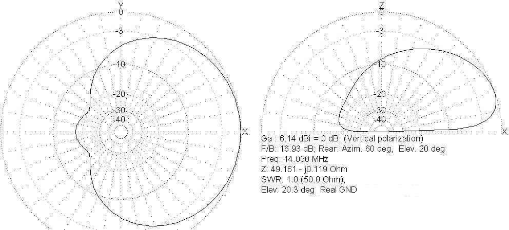 Z obrázku vidíte vynikající přizpůsobení, nádhernou vyzařovací charakteristiku a vynikající F/B a zisk. Tato tříprvková anténa je však docela nepříjemné monstrum: