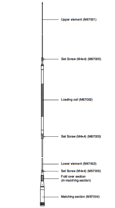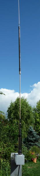 2200 mm), elektricky však stále zůstává anténou typu lambda/2. V patě