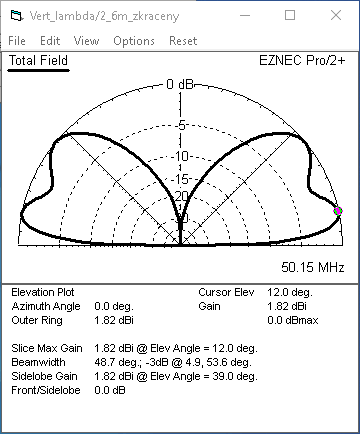 minimum VSWR na požadovaném kmitočtu. S ohledem na použité pásmo (6m),