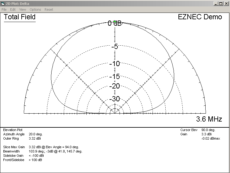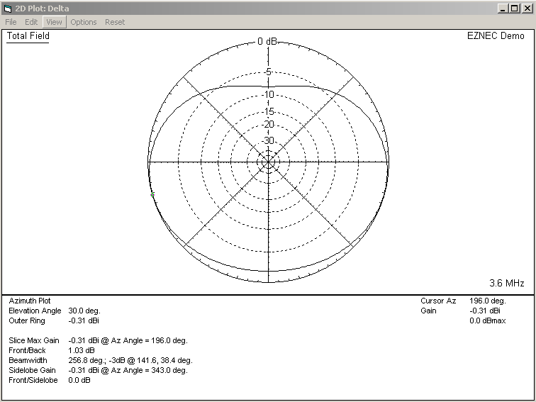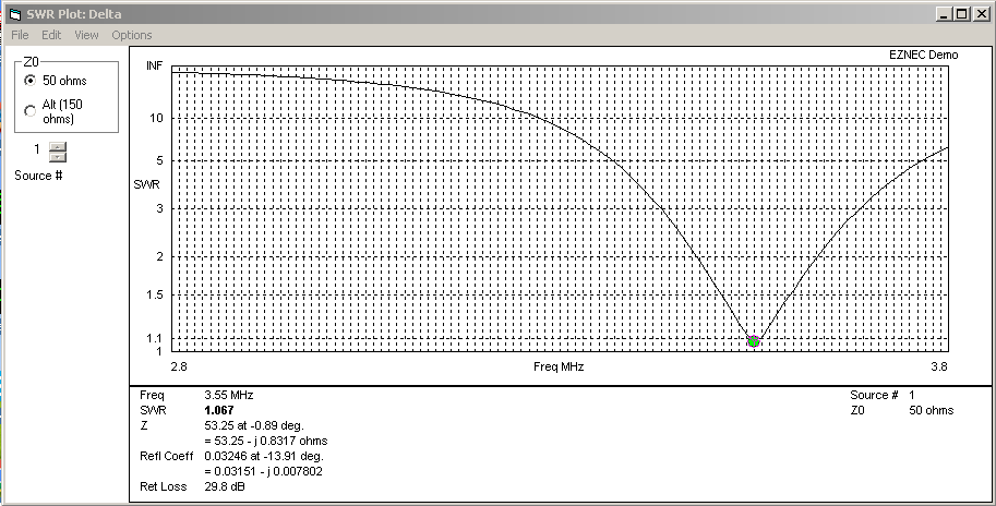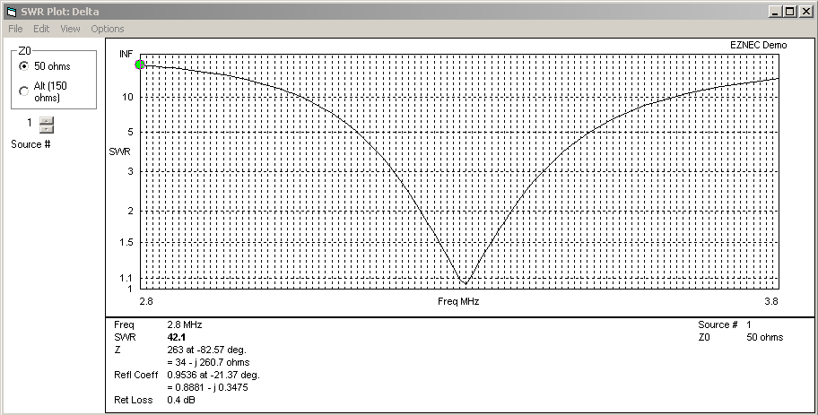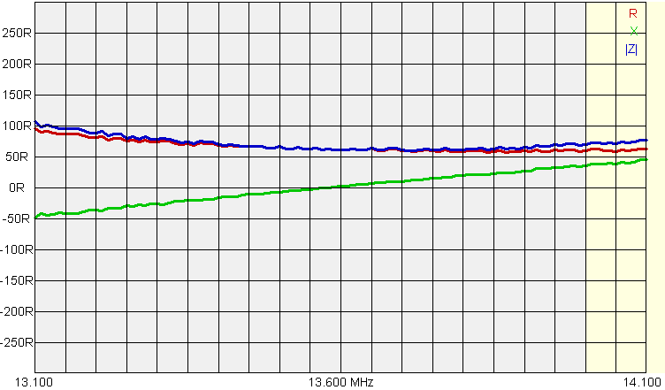 Neodpustím si důležitý závěr. I když jsem nepoužil metodu, kterou obvykle používám, s celou řadou korekcí na změřené vlastnosti země v mém QTH, která je přesnější, ale standardní a doporučené nastavení autorem programu (W7EL), navíc jen demoverzi s velice omezenými možnostmi segmentace, musím konstatovat, že sedí naprosto přesně charakter výpočtů v kmitočtové rovině a nepatrně se liší výpočty impedancí.