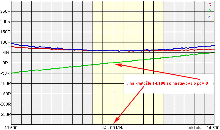 1. Rezonanční kmitočet zářiče se po připojení napáječe příliš nerozladí.