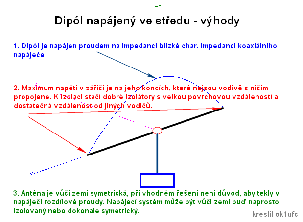 Dipól, který napájíme ve středu má proti jiným anténám několik základních výhod:
