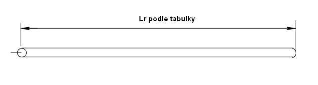 1. Příprava koaxiálního kabelu na výrobu zářiče. Ustřihneme koaxiál typu RG-58 v potřebné délce Lr (Lr je délka s rezervou na stříhání).