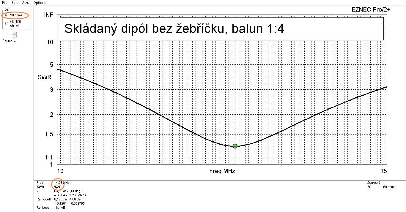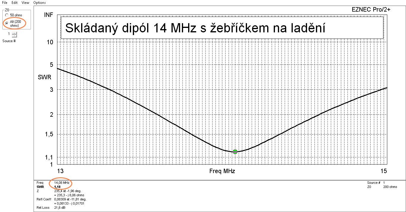 dipól má kolem rezonančního kmitočtu impedance blízké hodnotě 200 Ohmů. Po