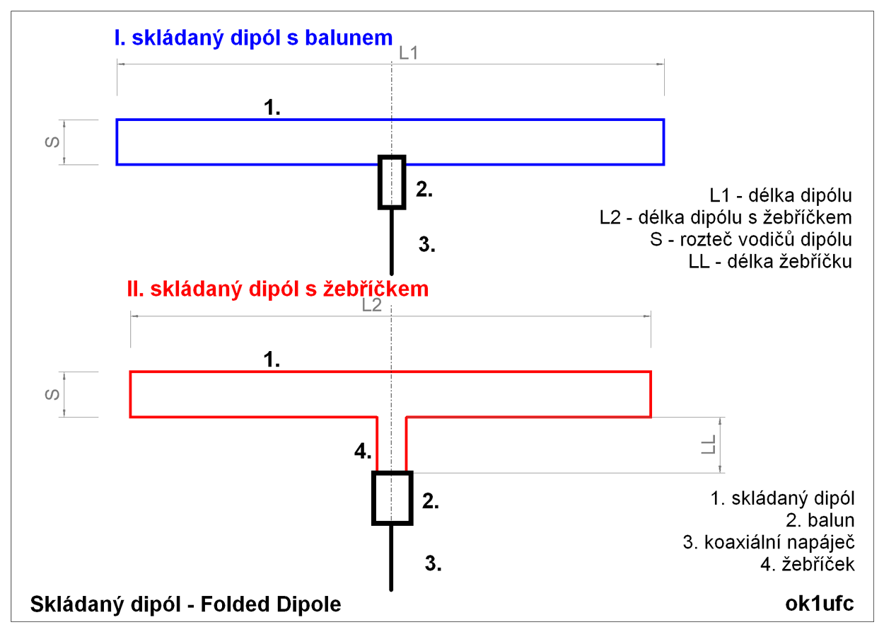 dipól napájet s využitím transformačního balunu 1:4, protože skládaný