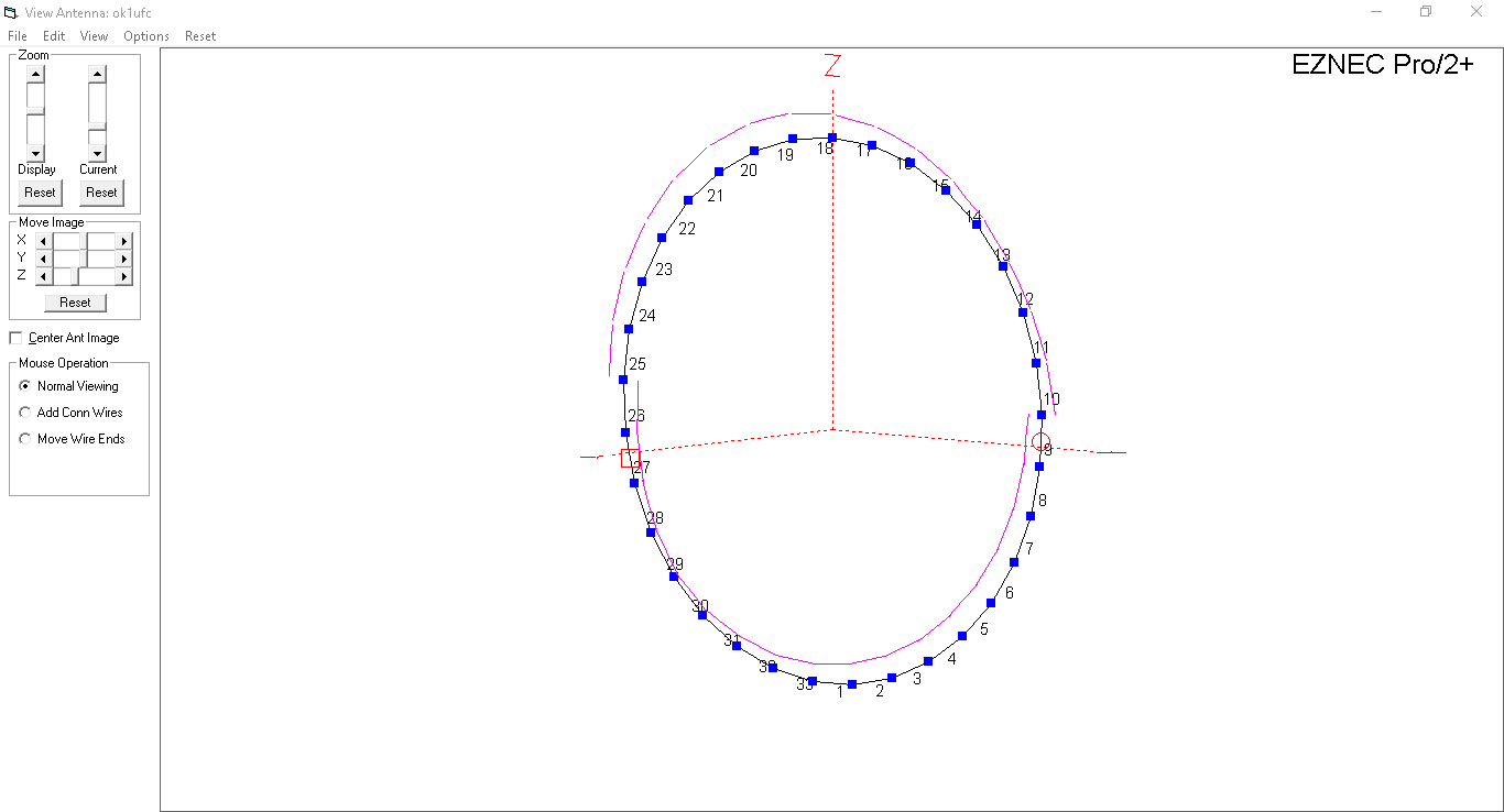 schéma antény z EZNECu, tj. obrázek, kde jsou zakresleny jednotlivé