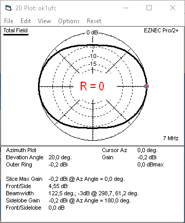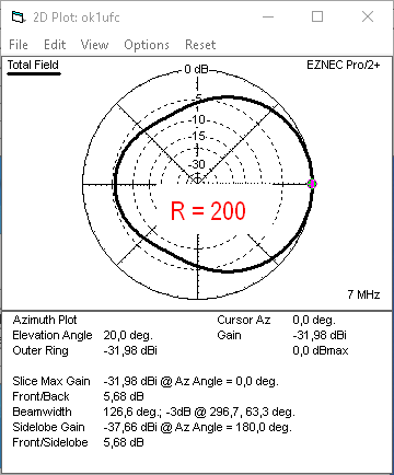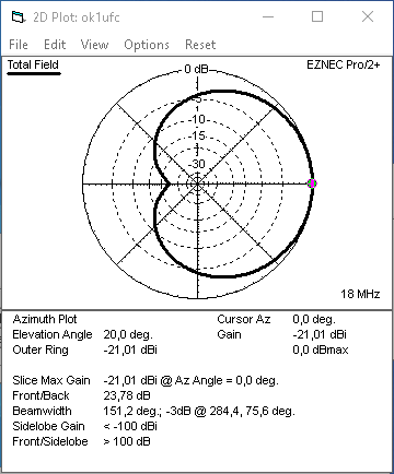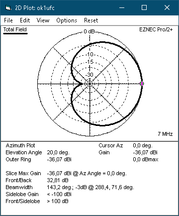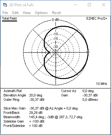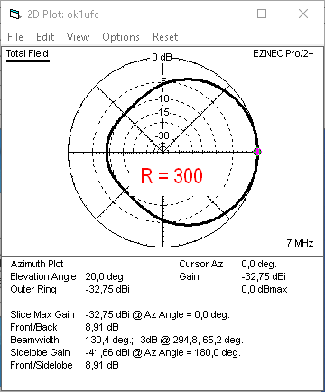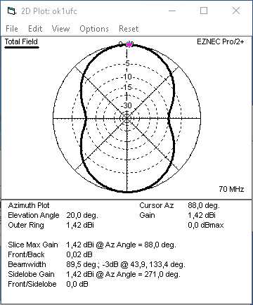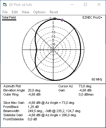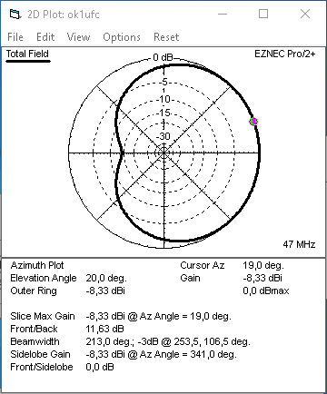 zjistíme modelováním antény v EZNEC, real ground, high accuracy,