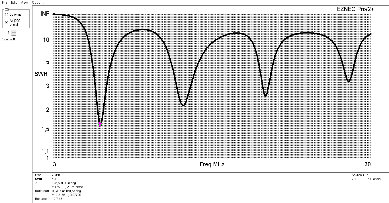 docílil na 4 pásmech (7, 14, 21, 28), přesto byly hodnoty VSWR vyšší,
