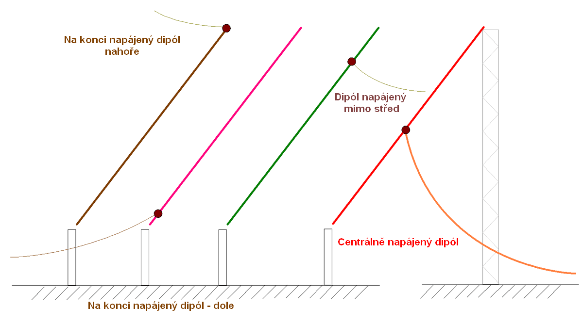 různým způsobem napájení (ve středu, mimo střed, na konci,