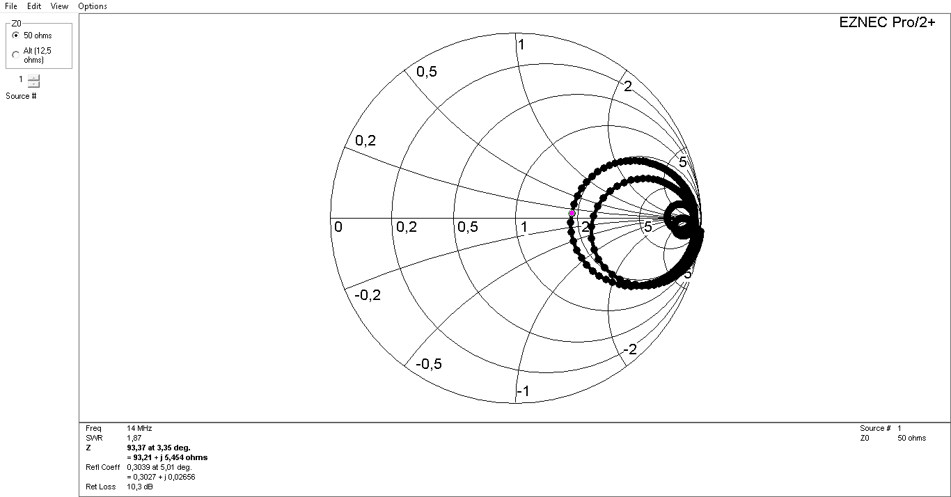 lambda/2 nevyžadoval tuner v místě napájení. Použitelného VSWR jsem