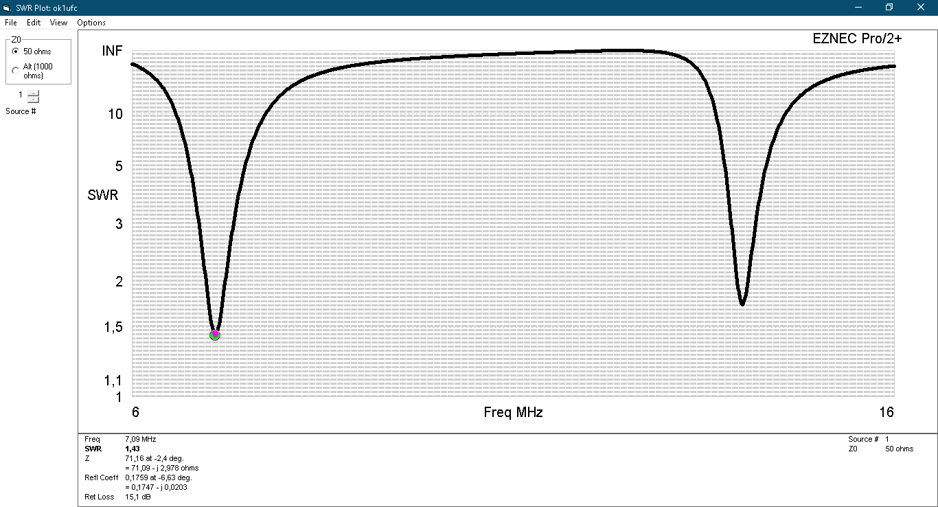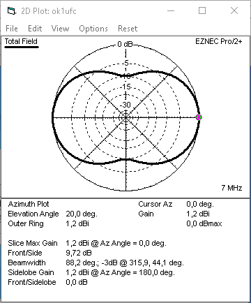 instalace nad zemí. A současně též na rezonančním kmitočtu dipólu. A my tu máme pro obě pásma jen jednu hodnotu jmenovité