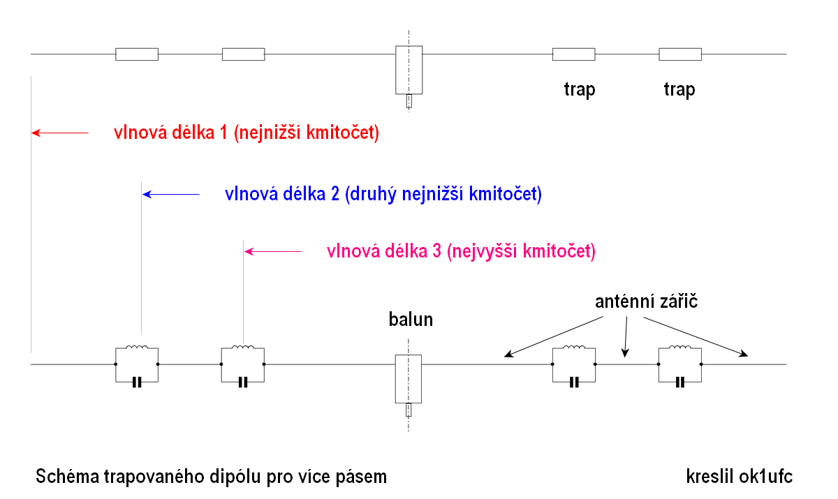 krátkovlnná anténa. Zářič antény je rozdělen pomocí trapů. Slovem trap