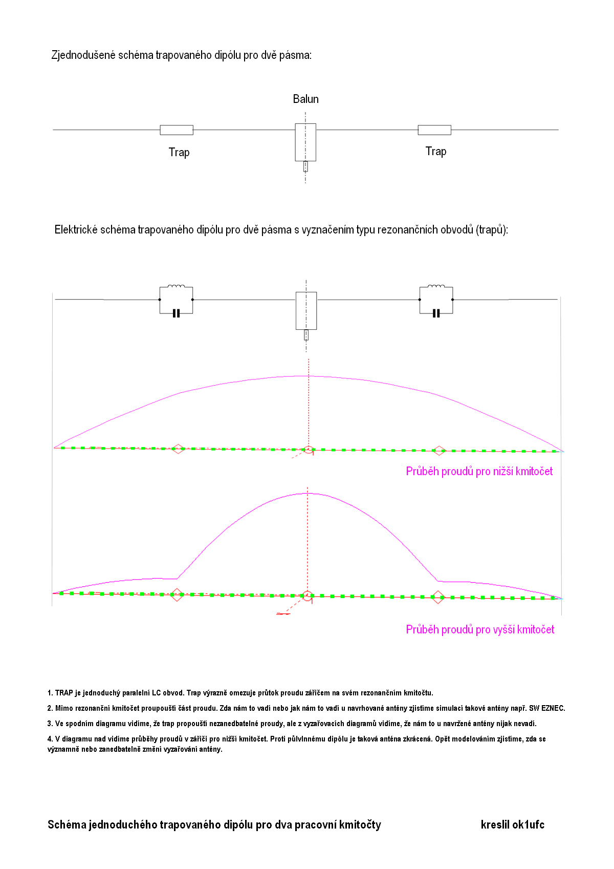 vyšším kmitočtu obě části zářiče. To jest část s balunem k trapům od dvou