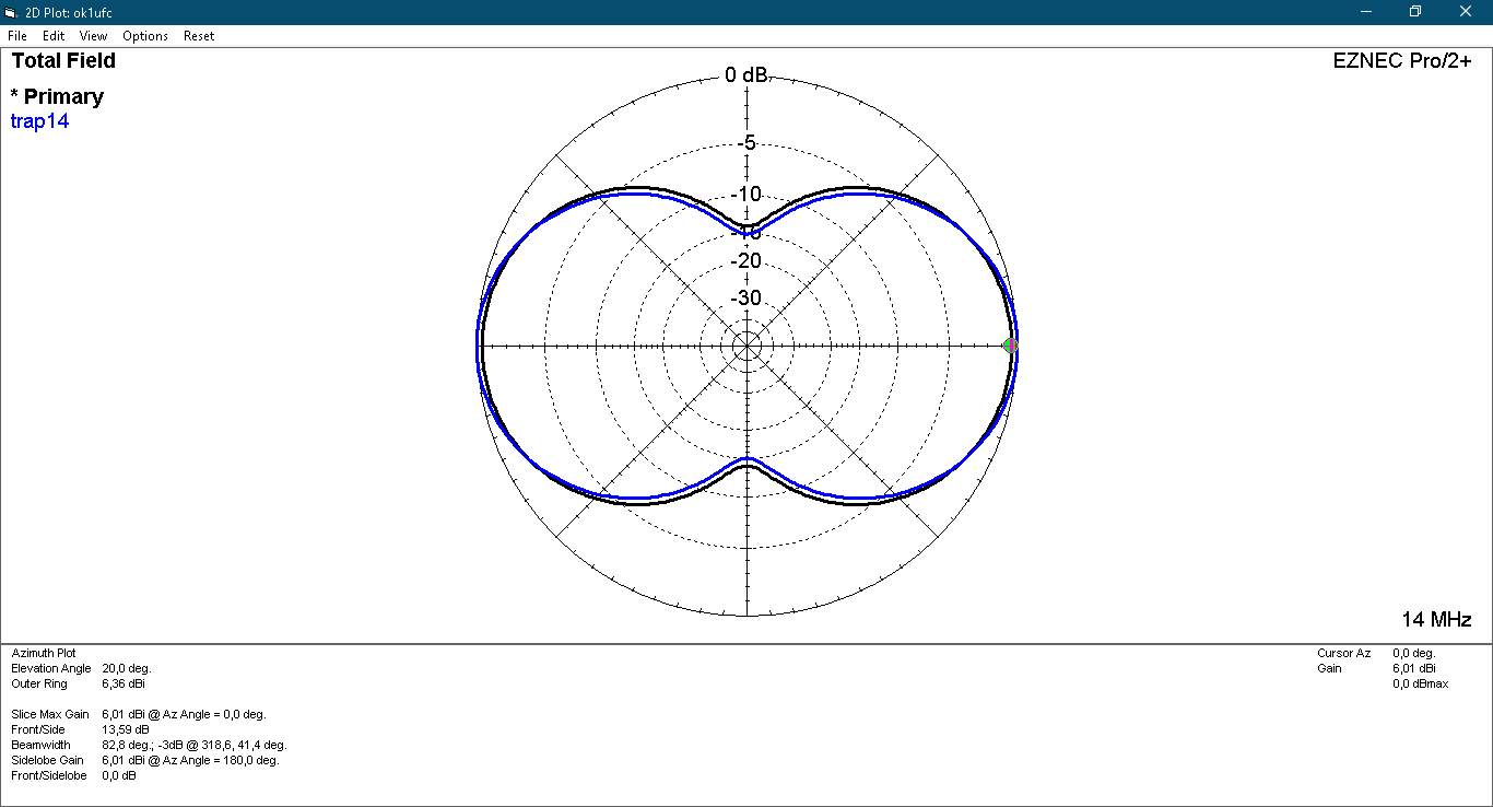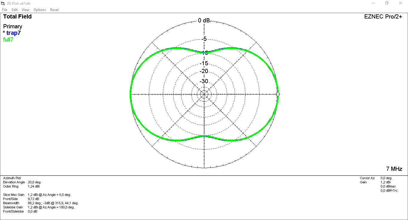 našeho příkladu je 7 MHz. Opět porovnáme vyzařování trapovaného a