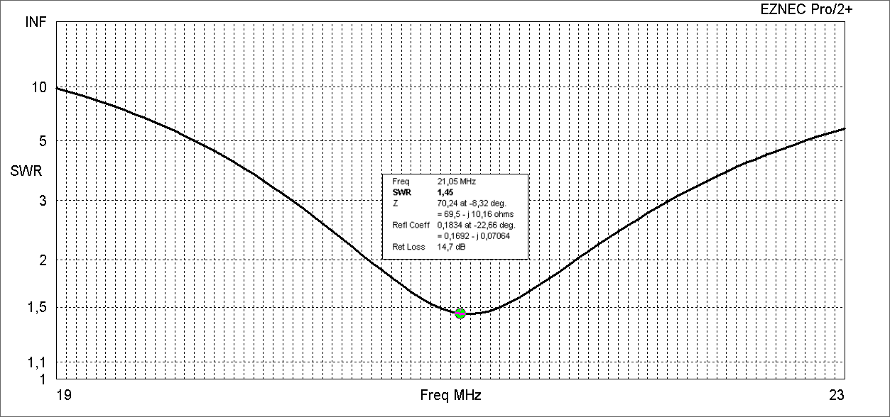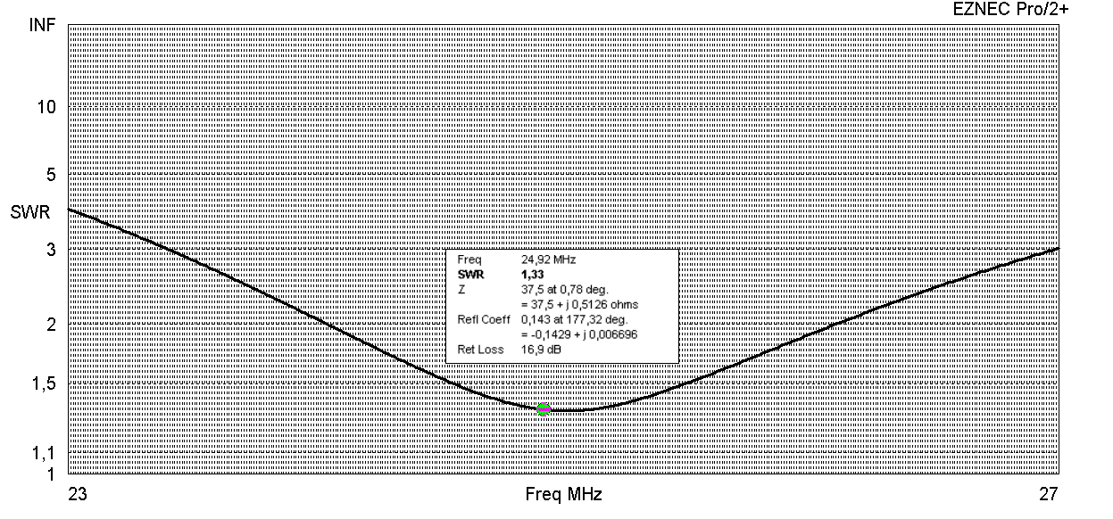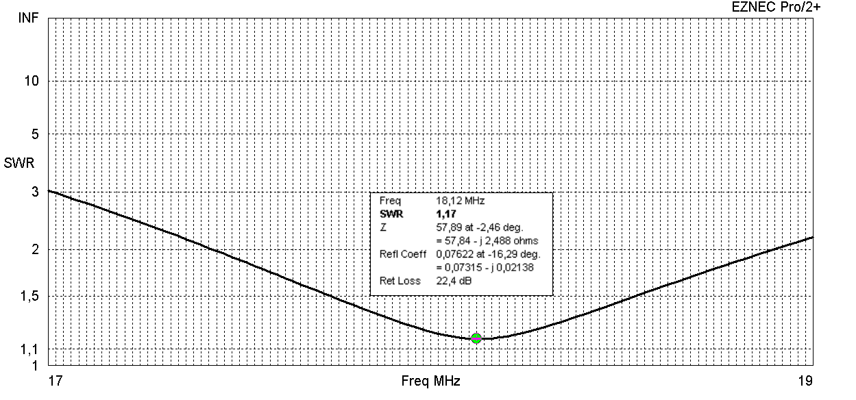 lze realizovat anténu s použitelným průběhem VSWR na pásmech 18, 21 a 24 MHz.