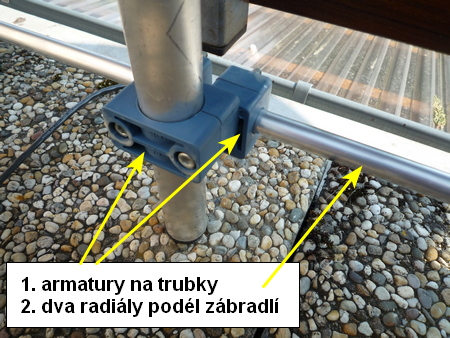 vertikálem, včetně balunu u držáku zářiče (v krabičce na zábradlí),