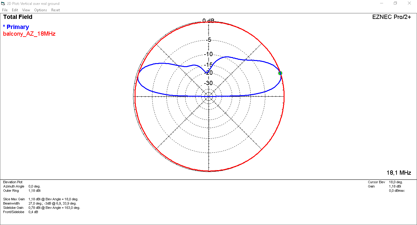 můžeme v obou rovinách řešit v programu EZNEC. Příklad pro pásmo 18 MHz: