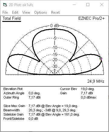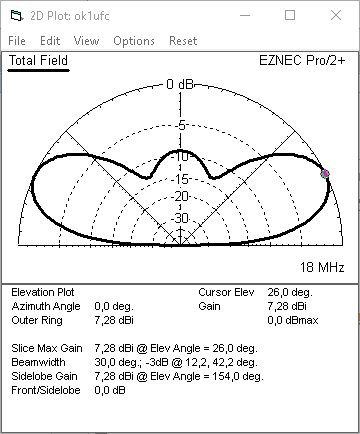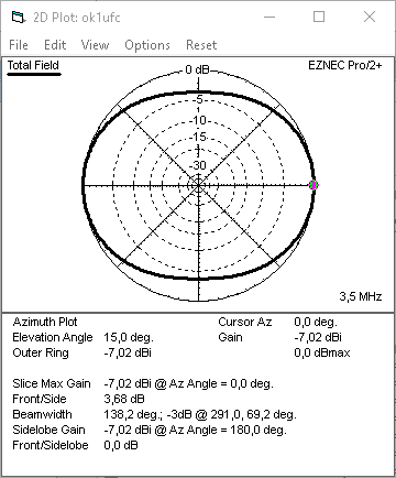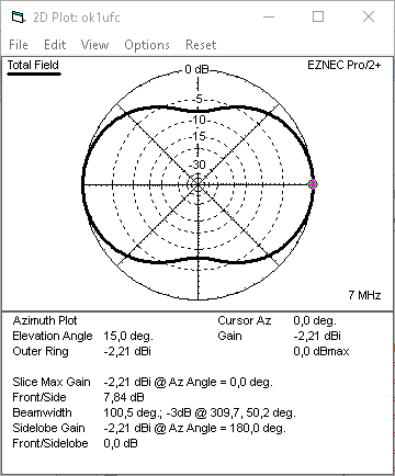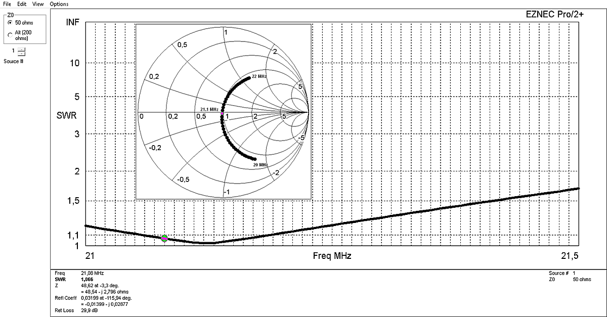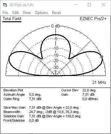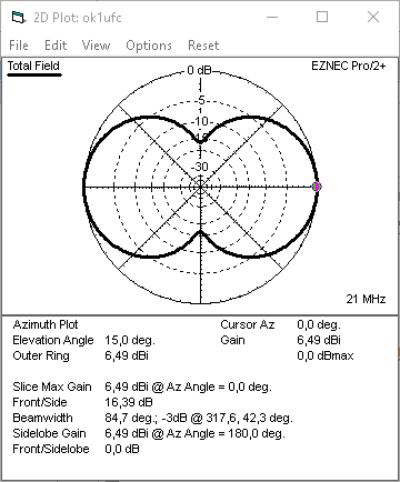 kmitočet na 21 MHz, ale aby klesly hodnoty impedancí. Vznikla anténa s