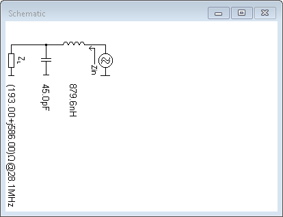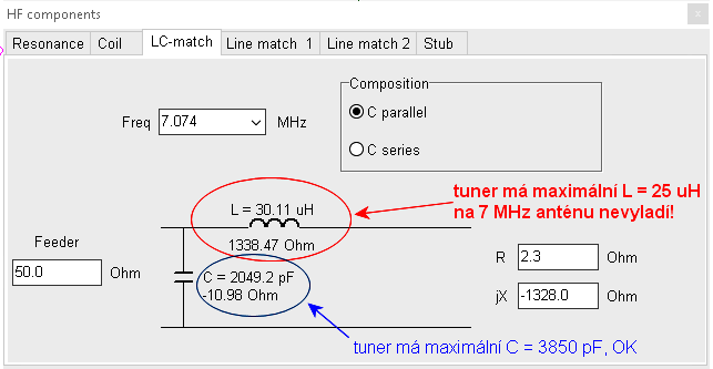 programu MMANA (jmenuje se HF Component, záložka LC-match, příklad