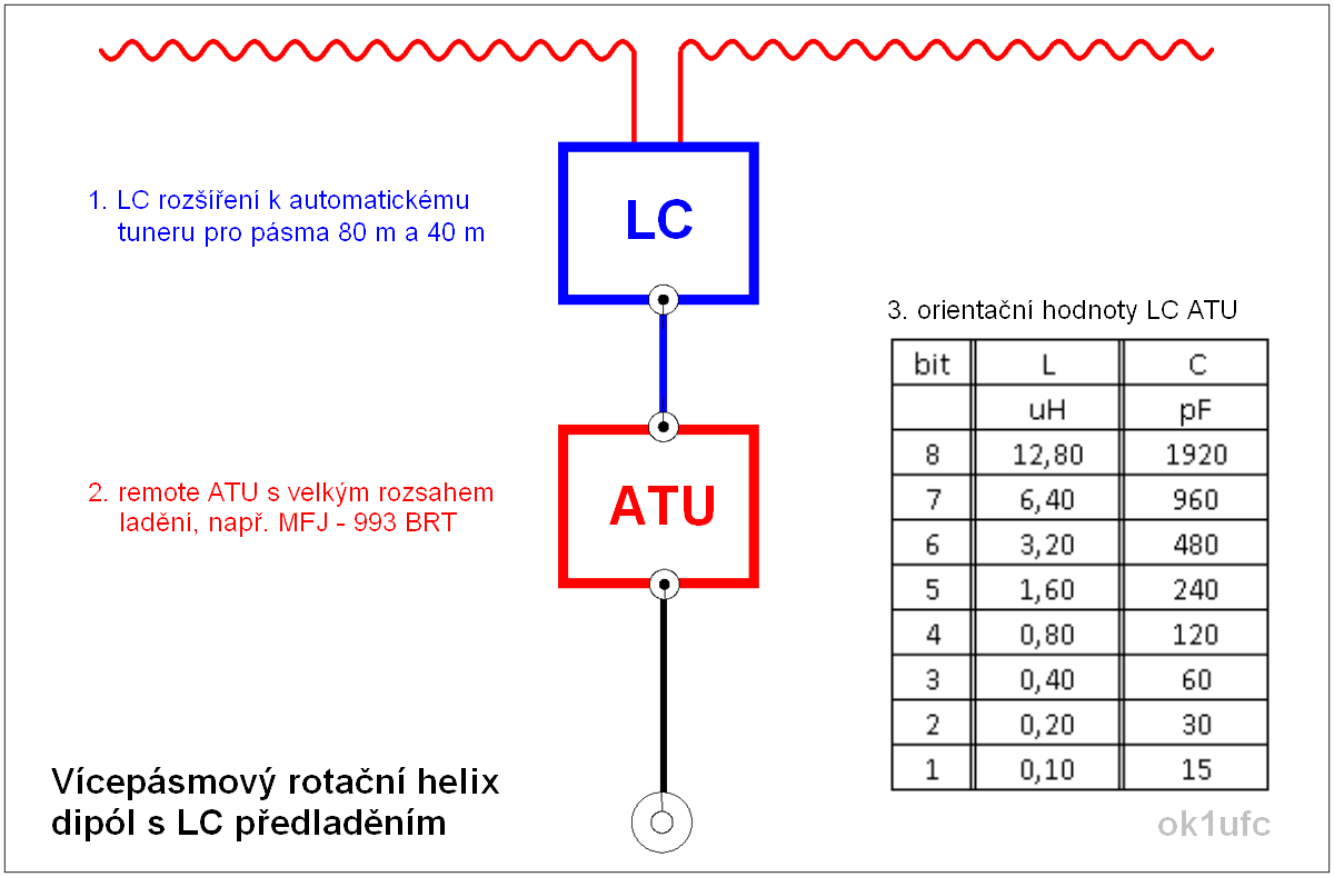 schopen kvůli malé hodnotě indukčnosti vyladit anténu na pásmu 3.5 MHz.