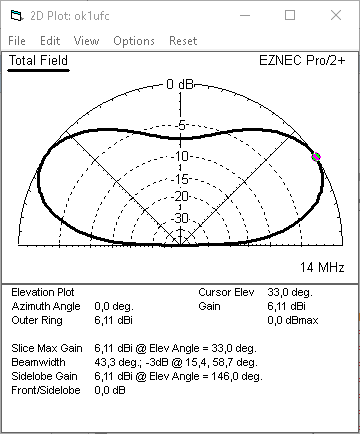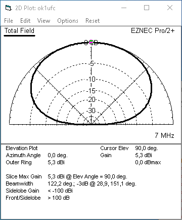 výpočtu pro kmitočet 7.074 MHz viz vpravo.