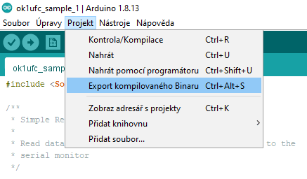 Zkompilovaný binární kód, který jsme obdrželi exportem z Arduino