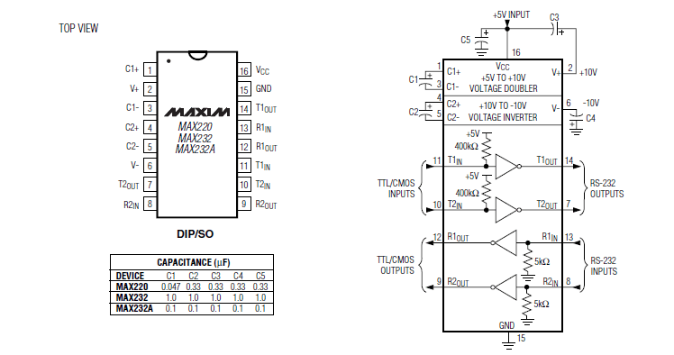 MAX232 (Maxim). Datasheet (pdf) je ke