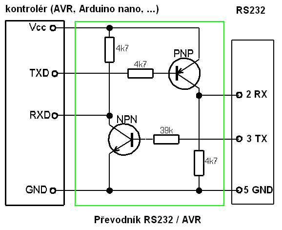 pomocí špiček TX, RX, GND a +5 V a přenos dat se provádí s