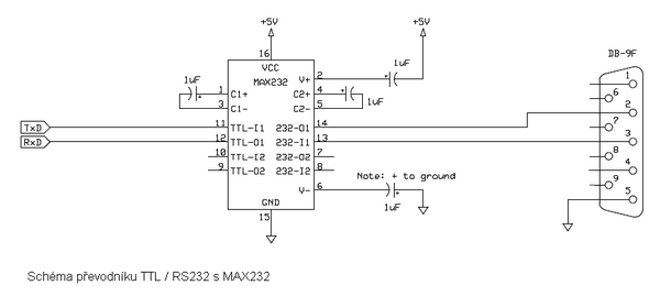 převodníku TTL na RS-232, které je realizované s pomocí obvodu
