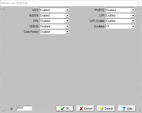Program umí rovněž nastavit tzv. konfigurační bity kontroléru
