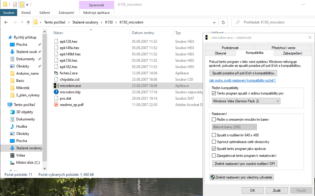 5. Nastavit program microbrn.exe do režimu kompatibility Vindows Vista