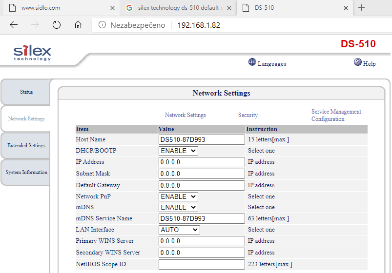Chování DS-520 Protože zařízení Silex USB Device server funguje neskutečně