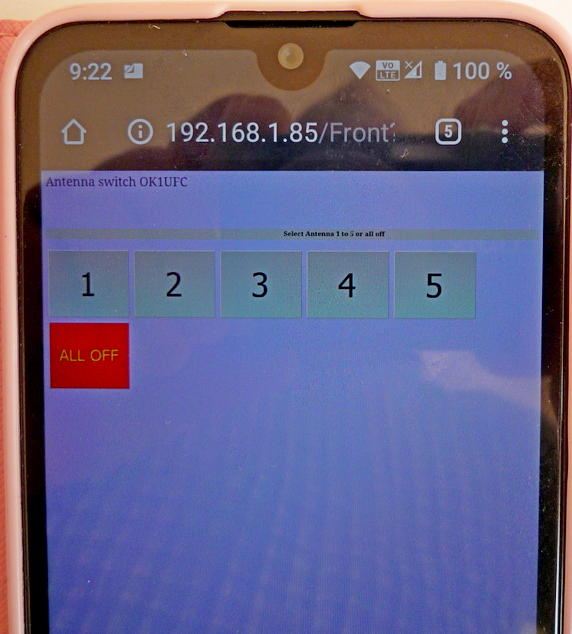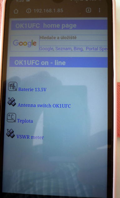Vpravo dole: ovládání HF anténního přepínače z mobilu.