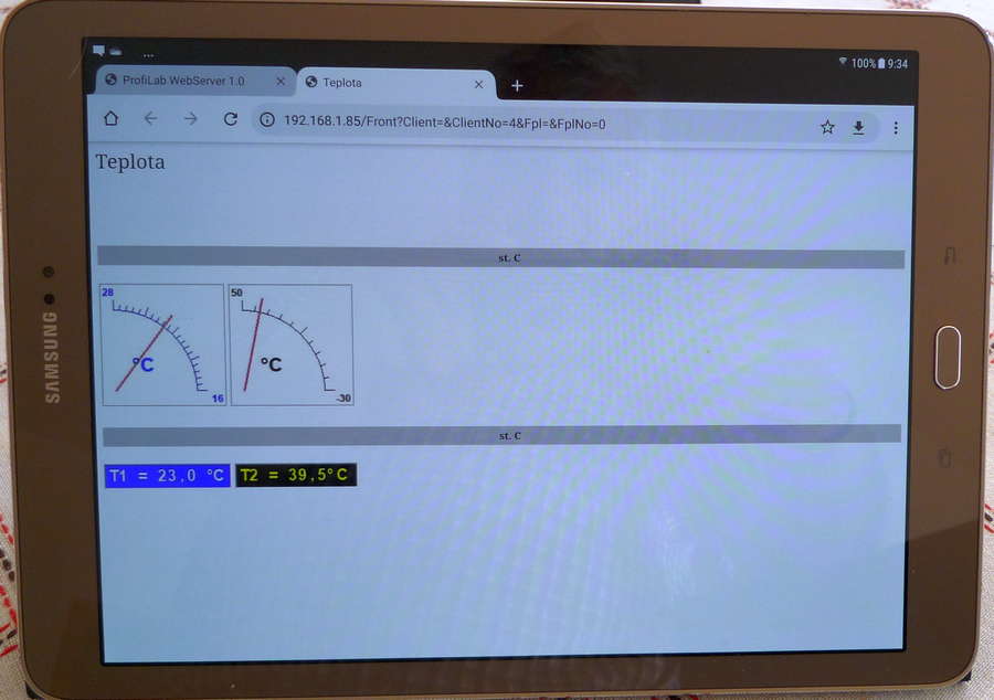 Dole: dálkové měření teplot (okolí a zařízení) tabletem.