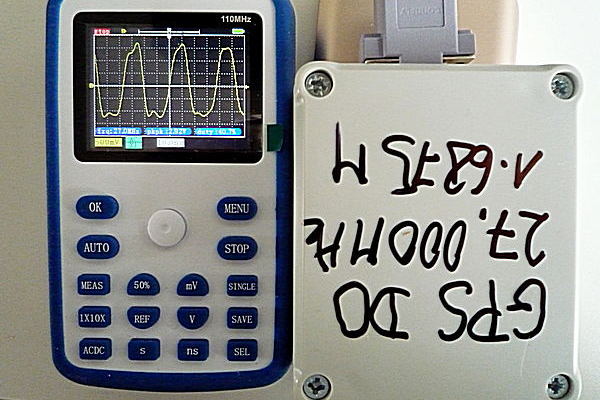 Nastavení Nastavení oscilátoru jsem provedl na stole tak, že jsem: Další zkoušky Na GPS DO jsem samozřejmě měřil orientačně kmitočet čítačem a průběh na výstupu hradla - invertoru 74HCT04, které bylo zatíženo koaxiálním kabelem s char. impedancí (dříve vlnovým odporem) 50 Ohmů. Průběhy: