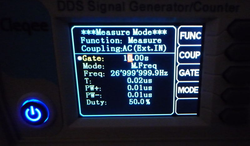 Kmitočet 26.99983 přesně odpovídá kmitočtu 26.99999 MHz, odchylka, kterou vidíte na displeji je chyba použitého měřidla. Průběh odpovídá použité logice 74HCT a výstupu, který je zatížen kabelem. Můžete srovnat s oscilogramy jiných generátorů. Amplituda a průběh vyhovují například pro použití s LNB (nutno realizovat s krystalem 25 MHz, 25.787179 MHz atd.) a synchronizovanému VFO s obvodem Si5351, který jsem popsal zde.