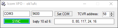 1. Po zapnutí PC kliknu na Set COM. Program si nastaví sériový port a adresu Icom.