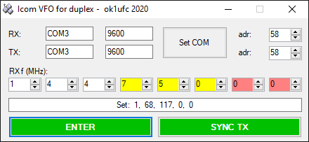 ON, vrátit se na VFO A a vysílat ...) Synchronizace programem je téměř okamžitá (zacvakají si relé, problikne displej s VFO B), takže mě ani stařičký Icom 706 MK2G při provozu SSB na QO-100 NB nijak podstatně neomezoval. Program s více funkcemi pro ovládání Icomů, včetně zdrojového kódu (Visual Basic) je na této stránce. Další plán a tvůrčí činnost ? Až budu mít pár okamžiků, rozšířím algoritmus synchronizace vysílače o algoritmus kompenzace změny kmitočtu dle Dopplera, a to s ohledem na použité kmitočty RX/TX a pohyb nebeského tělesa. |