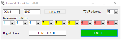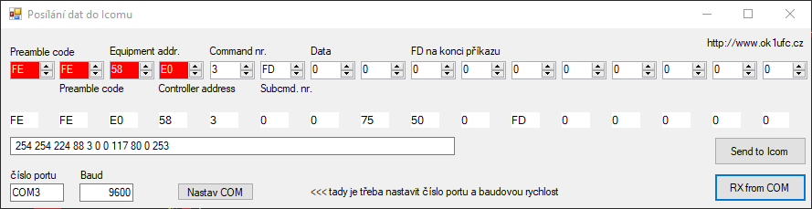 přímo z PC přes CI-V. Proto byla použita sekvence příkazů, jako kdybych