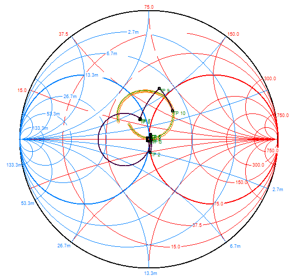 jsem pomocí funkce Sweep ve Smithově diagramu. Podle konkrétního