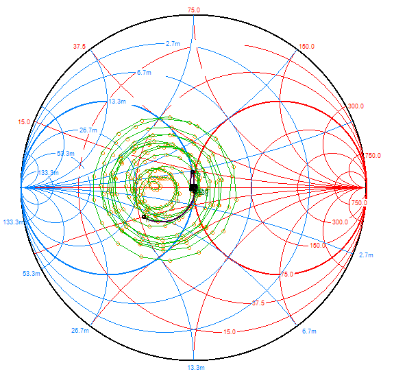 ve Smithově diagramu představují "spirály s body" - uvádím dole, v