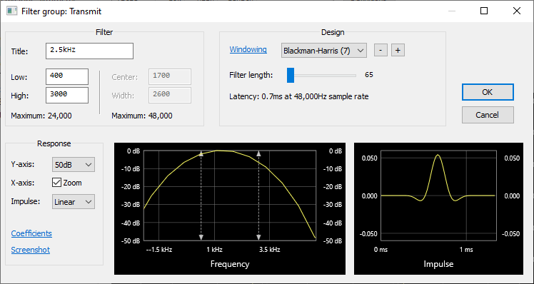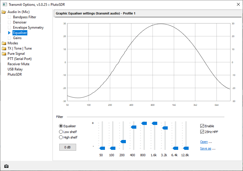 15, equaliser - viz obrázek, TX filter 400 - 3000 Hz, typ