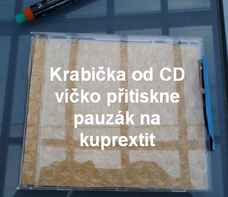 přiložíme pauzák s vytištěným motivem desky. Tak, aby inkoust byl