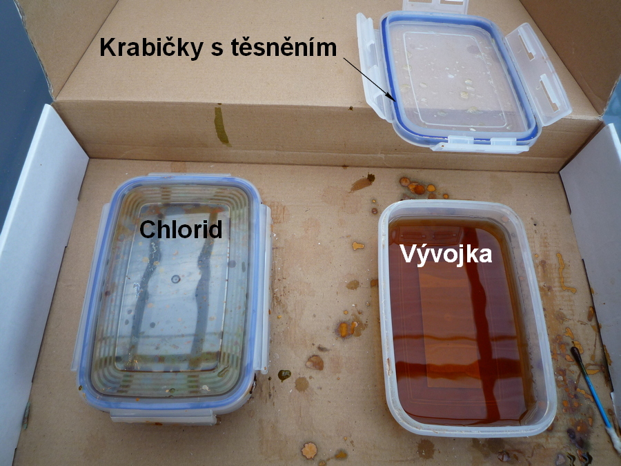 Leptám v chloridu železitém (kupuji naředěný v GME).