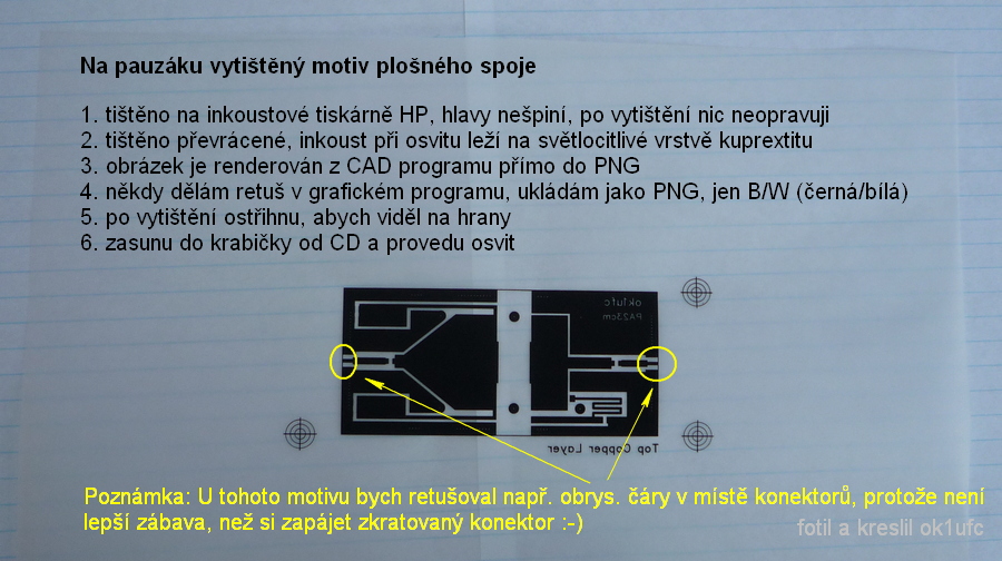 musí ležet přímo na citlivé vrstvě kuprextitu. Proto generuji a tisknu
