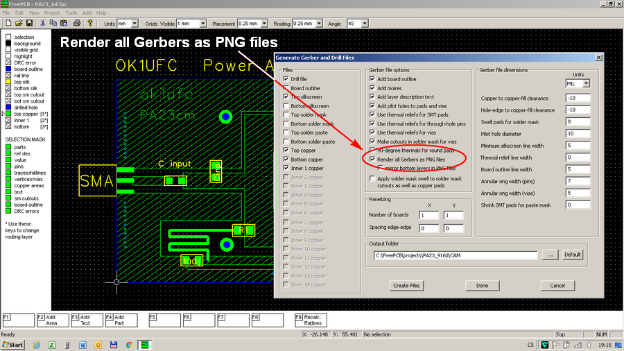 spoje. Můj program umí vygenerovat "gerber" a "drill" soubory, které