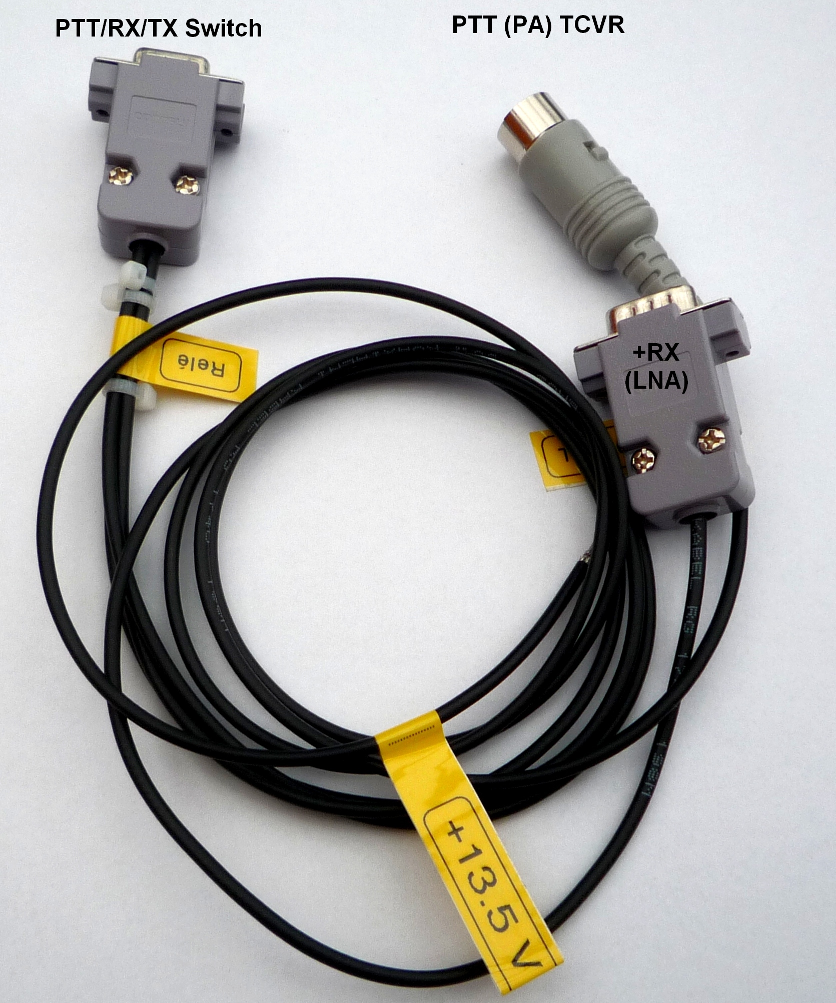 LNA je s přepínačem propojen pomocí koaxiálních kabelů pro TX a RX a napájecím kabelem pro napětí + RX (13.5 V). Tímto napětím se rovněž ovládá anténní relé u LNA. Po přivedení napětí je tedy předzesilovač napájen, anténa je připojena na jeho vstup a výstup LNA je zapojen do konektoru pro koaxiální kabel RX. Bez napětí +RX (13.5V)  je anténa propojena s výstupem do kabelu TX.