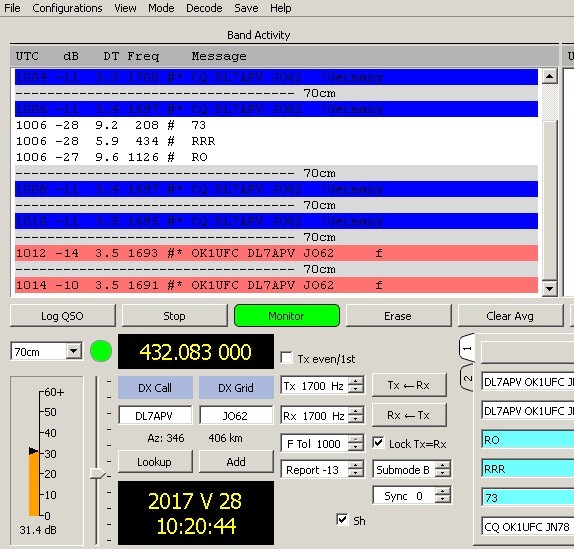 V rámci popsané koncepce UHF Small Project jsem vyzkoušel digitální provoz WSJT-X s celou řadou LNA předzesilovačů, výkonových PA (nebo bez PA) a antén.