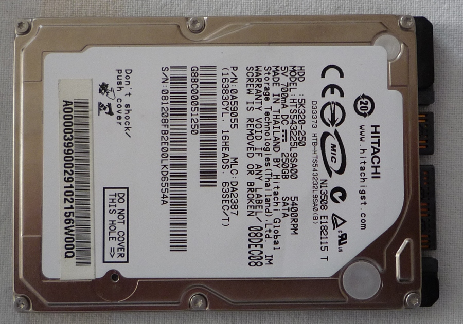 vpravo. Jde o disk se sériovým rozhraním SATA. Takové disky byly v