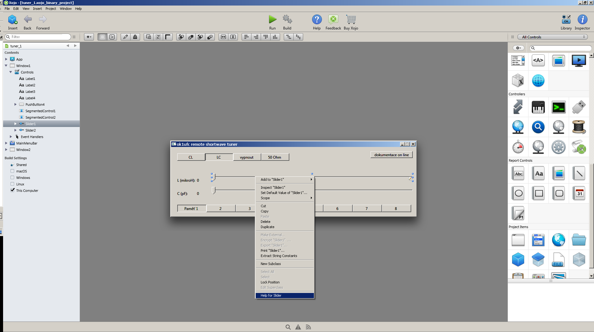 ok1ufc tunerů). Z edukativních důvodů jsem neměnil názvy tříd (Window)